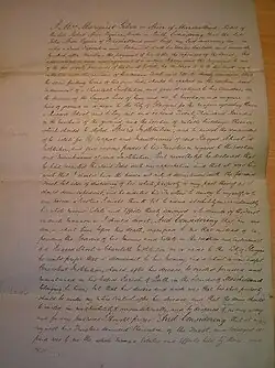Robert Service bought Marsheland and passed it on to his son Robert. In 1816-17, the younger Robert Service sold it to Robert Spier, father of John Spier.[6] In 1820, the part of "the Marshal-land" held by Robert Spier had a rent value of £58 18s 2d, while another part held by a Mrs Gibson was valued at £20 0s 0d.[8] Aitken's map of 1829 shows an R. Spier, Esquire, as resident at "Marsheyland".[9] Andrew Spier, John's brother, is called "of Marshalland" and may have lived there until his untimely death.[10]