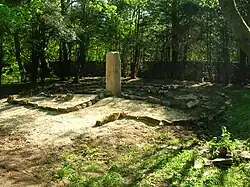 Seventy ex-pupils from Spier's died in the First and Second World Wars. A War Memorial was located within the school, however since the demolition of the school no publicly accessible memorial has existed and the old rose garden at the 'Garden of Remembrance' has long been overgrown. In 2012 an old Spier's gatepier was collected, cleaned and placed within the old garden as a War Memorial. The group Youth Making Beith Better (YMBB) created a labyrinth around the standing stone War Memorial as a religious memorial - the 'one true path', etc. as found in several cathedrals and in other religious contexts.