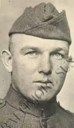 He followed several of the fighters he'd been with into signing with the 29th Division of the Maryland National Guard in 1917 and continued his coaching career in WWI rising to the rank of Sergeant by 1919 coaching National Guard boxers at Camp McClellan, a large army mobilization camp outside Anniston, Alabama.[5][9] While serving in the Army in France, he fought reigning European featherweight champion, Frenchman Charles Ledoux, in a rugged bout to a six round draw in an exhibition in an underground canteen in Verdun, France on October 4, 1918. During the same period he had an exhibition with the future French light heavyweight champion Georges Carpentier.[10]