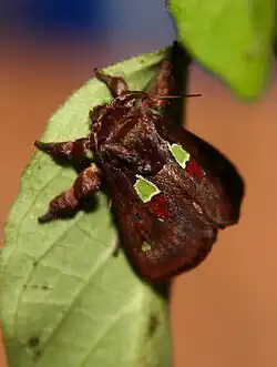 The spiny oak slug (Euclea delphinii) is the larval form (caterpillar) of a moth in the family Limacodidae.