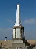 A stone memorial with four faces erected by the Second Field Force Battalion in remembrance of all Boer Officers and Burghers that died on Spion Kop.