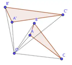 A spiral similarity taking triangle ABC to triangle A'B'C'.