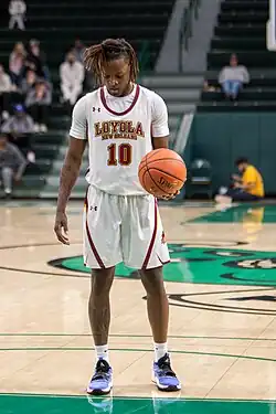 Loyola Wolf Pack guard Brandon Davis prepares to shoot a free throw on March 12, 2022. One of his 19 points along with 11 assist, which helped to prevail the Wolf Pack into the NAIA Round of 16.