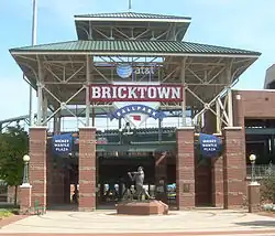 Paycom Center in downtown Oklahoma City is the large multipurpose arena which hosts concerts, NHL exhibition games, and many of the city's pro sports teams. In 2008, the Oklahoma City Thunder became the major tenant. Located nearby in Bricktown, the Chickasaw Bricktown Ballpark is the home to the city's baseball team, the Comets. "The Brick", as it is locally known, is considered one of the finest minor league parks in the nation.