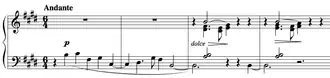 Sposalizio is the title of the first piece in Franz Liszt's Deuxième Année de Pèlerinage: Italie (Second Year of Pilgrimage: Italy), published in 1858. The composition starts out with a simple pentatonic melody, described as a "bell-like motif",[1] which transforms itself into a complex musical architecture. The melody then transforms itself into a type of wedding march, which continually embellishes itself to lead up to the grand climax, which contains crashing octaves into a loud finish. The composition ends quietly.[2]