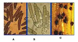 - ^ a b Duveiller, E.; H.J. Dubin. Helminthosporium leaf blights: spot blotch and tan spot. FAO Corporate document repository.
