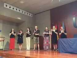Sign language interpreters from different countries during a project meeting with Spreadthesign in 2015 at the Universidad Rey Juan Carlos.