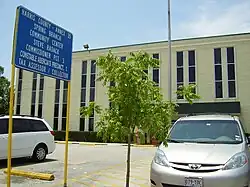 Harris County Precinct 3 operates the Spring Branch Community Center and Courthouse Annex and a tax office at 1721 Pech Road in Spring Branch.[71][72] Alma Corporation built the building now housing the Spring Branch Community Center in the late 1960s. In 1971 Alma sold the building to Sam Houston Memorial Hospital; in 1976 the hospital sold the building to Houghton and Neville West. Harris County bought the building in 1986, causing it to become a courthouse. Bob Eckels, then the Precinct 3 commissioner, established a community center in the ground floor's north half. Steve Radack became the commissioner of Precinct 3 and began renovating the building. After the census of 1990 the county rezoned the community center and the surrounding neighborhood into Precinct 4. During the 1990s changes to the center occurred. The county moved the center back into Precinct 3 after the 2000 Census.[73] In 2011 the Trini Mendenhall Sosa Community opened, taking in the previous community center.[74]