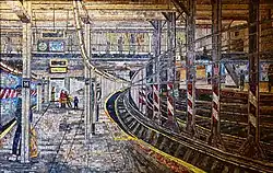 The 1994 artwork installed at the stairway of the northbound platform's fare control is a large, lively mosaic called New York City Subway Station by Edith Kramer.[36] It consists of a single painting depicting 14th Street–Union Square on the IRT Lexington Avenue Line.[36]