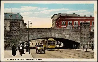 By 1890 the Springfield's intersection with the Boston & Albany was finally grade-separated with the construction of Springfield's famous 'Main Street Arch' railroad overpass.[18]