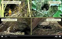 Springwatch, Autumnwatch until 2022 and Winterwatch, sometimes known collectively as The Watches,[1][2] are annual BBC television series which chart the fortunes of British wildlife during the changing of the seasons in the United Kingdom. The programmes are broadcast live from locations around the country in a primetime evening slot on BBC Two. They require a crew of 100 and over 50 cameras, making them the BBC's largest British outside broadcast events. Many of the cameras are hidden and operated remotely to record natural behaviour, for example, of birds in their nests and badgers outside their sett.
