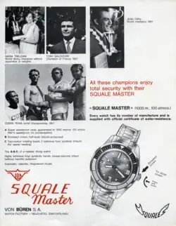 Squale SA (French: [skwal]) is a Swiss watch brand founded in 1959 by Charles von Büren, specializing in professional diving watches.[1] Squale is owned by the Maggi Family, who had previously been distributors of von Büren/Squale watches in Italy.