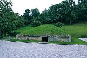 It is not known who the tomb belongs to.[1][2] The tomb is the only square-shaped tomb in Gyeongju.[1] It is located below the ground, and has a tumulus over it. It is 9.5 m (31 ft) on each side and 3 m (9.8 ft) high. It has statues of animals of the zodiac surrounding it. The tomb was first excavated in 1920. By that point, the tomb had already been robbed. However, gilt-bronze crown ornaments, a silver belt buckle, and other precious items were recovered. The tomb had maintenance work performed on it in 1964.[2]