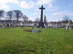 St. Finbarr's Cemetery (Irish: Reilig Naomh Fionn Barra) in Cork, Ireland, is the city's largest and one of the oldest cemeteries in Ireland which is still in use. Located on the Glasheen Road, it was first opened in the 1860s. The entrance gateway was erected circa 1865, and the mortuary chapel consecrated in 1867.[1][2][3]