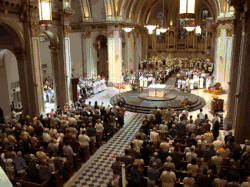 In 1994, the cathedral underwent its most recent major restoration and renovation, which sought to incorporate changes supposedly brought about by the Second Vatican Council. The liturgical design consultant for the renovation was Father Richard S. Vosko, a priest of the Diocese of Albany who has overseen the controversial redesign and renovation of numerous churches and cathedrals around the country. These changes included moving the altar from its original location at the east end of the cathedral to the crossing at the center of the building. The renovation also included the installation of an oculus and skylight above the new altar, where the dome had been. As part of the 1994 renovation, relics of St. Frances Xavier Cabrini were sealed beneath the altar; Cabrini had worshiped at the cathedral while she worked in Seattle from 1903 to 1916.[8]