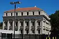 The 1885 fountain was demolished in a remodel that occurred under a Works Progress Administration (WPA) project to renovate the park in the 1930s.[4]: 3 Various WPA projects brought a new post office to the park's western edge and restrooms at the northern and southern ends of the park; the restrooms were removed in the 1950s.[4]: 14 During the construction of the post office, Harold Thurmond and John Holmes were lynched in St. James Park for the kidnapping and murder of Brooke Hart in November 1933.[18] Construction materials from the post office were used to storm the city jail where the men were being held; the trees in the park from which the men were hanged (not far from the McKinley memorial) were removed shortly afterward to deter souvenir-seekers.[19][20]