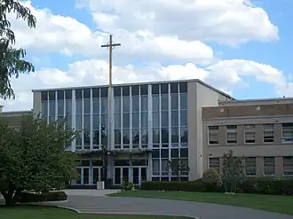 St. John's Preparatory School was established in 1870 by the Vincentian Fathers as the Preparatory Department of St. John's College (later University).[1] In 1955 the College moved out to its new campus and the prep school further expanded, taking over its former buildings. Through the early 1970s, St. John's Prep was all-boys, located in Bedford–Stuyvesant, Brooklyn on Lewis and Hart Avenues. The school closed temporarily in 1972 but reopened in 1981 on Crescent Street in Astoria.