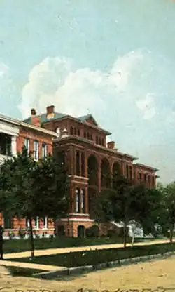 St. Joseph's Infirmary was founded in 1887 by a Catholic order known as the Sisters of Charity of the Incarnate Word. The original building was an old frame structure at the corner of Caroline Street and Franklin Street.[2] The year after it was established, the hospital entered into an agreement with the Harris County Commissioners Court to care for the city's indigent patients.[3] The hospital earned a great deal of community support due to the care it provided to victims of an 1891 smallpox outbreak.[2]
