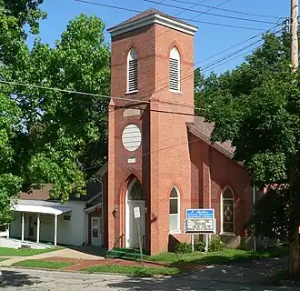 St. Matthew's Chapel A.M.E. Church is a historic African Methodist Episcopal church located at 309 Spruce Street in Boonville, Cooper County, Missouri. It was built in 1892, and is a one-story, rectangular, gable roofed Gothic Revival style brick church. It has a hipped roof three story projecting tower and a rectangular, hipped roof, brick apse attached to the rear.[2]: 2