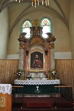 The main altar was originally dedicated to St. Michael. It is a late Rococo altar, which was made around 1770. The church was also equipped with a side altar of Corpus Christi and the altar of St. Peter and Paul. During the construction of the south aisle was built the east chapel, where is placed the altar of St. Marty.