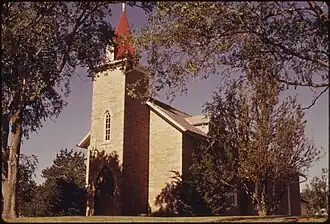 It was described as "an example of the gable front, one-story, one-room native limestone building that stands in almost every county in Kansas."[2]
