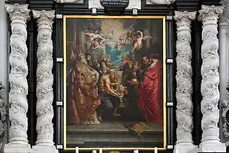 Pieter Verbrugghen I and his son Pieter Verbrugghen II created a Baroque marble main altar that was constructed around Rubens' painting The vision of St. Dominic. The Dominicans ordered in 1670 a new painting on the Martyrdom of St. Paul from Theodoor Boeyermans. This painting and Rubens' painting were installed in the new main altar and could be shown alternately through a rotating mechanism with hinges. Both paintings were robbed by the French occupiers in 1794 and sent to Paris. In 1811 Napoleon donated the paintings to two regional museums: Rubens' St. Dominic to the Musée des Beaux Arts in Lyon, and Boeyermans’ St. Paul to that of Aix-en-Provence. Despite the agreements of the Congress of Vienna of 1815 neither altarpiece was ever returned by France on the pretext that Napoleon had given them to regional museums. The painting The Descent from the Cross completed by Cornelis Cels in 1807 is now placed in the space occupied by the stolen altarpieces.[1][5]