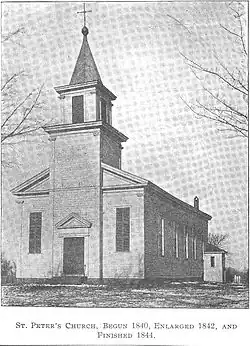 St. Peter's was the first Roman Catholic church built in Norwalk. Prior to its construction, the people of Norwalk attended mass at St. Alphonsus, established about 1828, in neighboring Peru.[1] Construction of the church building began in 1840. The church was enlarged in 1842, and finally completed in 1844.