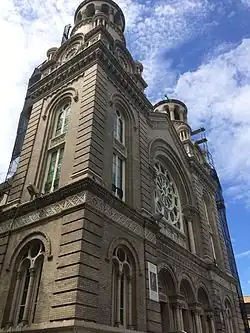 The original Church became too small and many parishioners had to stand at Mass because it was over capacity. On August 4, 1897, ground was broken for the new Church, designed in the Byzantine Revival-style. The architect of St. Raymond Church was George H. Streeton of Brooklyn who also designed the Cathedral Basilica of St. James in Brooklyn, as well as St. Raphael's Church in Manhattan (1900–1902). The building was dedicated 23 October 1898.[1] In 1932, the old main altar of wood was replaced with one of marble.