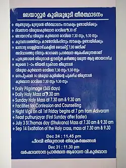 - ^ "Kerala / Kochi News : Malayattoor church festival held". The Hindu. 20 April 2009. Archived from the original on 7 November 2012. Retrieved 6 June 2014.