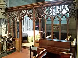 A new baptistry created in the North transept in 1964 was designed by George Pace and a spacious narthex, designed by P. B. Chatwin (Chatwin's son), was added in 1968 to mark the church's centenary year. The carving on the font cover is by John Bunting, as also are the finials on the riddel posts of the Lady Chapel, representing the four evangelists.