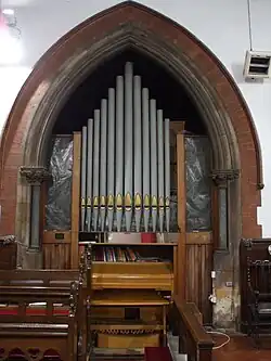 The church formerly contained an organ by Bryceson, the specifications of which can be found on the National Pipe Organ Register. However, this was replaced in the 1960s with an electronic organ by Compton. It bears a plaque with the following inscription "To commemorate with grateful thanks the rebuilding of this organ through the generosity of church members and friends. Also the restoration of the woodwork by Alan Pipe and Albert Dixon."