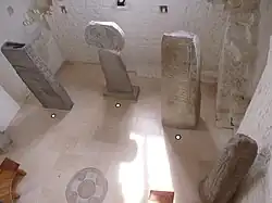 The display space for the stones is fitted with simple, striking materials – the floor is polished limestone, and the walls are a simple limewashed white, providing a minimalist background to contrast with the rugged grey Celtic stones.[24]