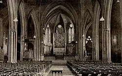 The original church interior was designed by George Frederick Bodley (Founder of Watts & Co.), and was fitted out in a highly ornate style typical of the Victorian era and of Anglo-Catholic churches, including stone carvings by Thomas Earp, wrought iron altar rails, stained glass windows, and a carved reredos painted by Clayton and Bell. A new organ by J. W. Walker & Sons Ltd was installed in 1875.