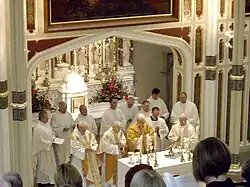Dr Noel Treanor, Bishop of Down and Connor, celebrates Mass on the newly dedicated altar