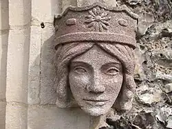 Additions in the 20th century comprised a porch at the west entrance, erected in 1908, and vestries in one corner of the nave, added in the 1970s in a style appropriate to the mediaeval architectural style of the church. This was designed by the Brighton-based architecture firm Denman & Son.[3] A new gallery, at the west end of the nave and accommodating the organ, was also built in 1908; the original gallery had been on the south side. The bowl of the original Norman font was discovered in the vicarage garden; a replica was made in 1910, and the original bowl was displayed in the church.[2][4]