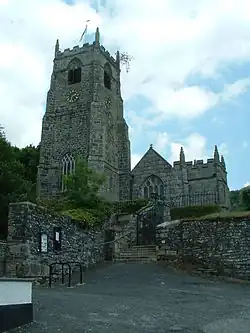 The original dedication may have been to 'St Anietus', with whom the Saxon Neot has been confused. In the 11th century a small monastery stood here; the early medieval church building (of which the tower remains) must have been smaller than the current church. Rebuilding in granite was undertaken in the 15th century, and the stained-glass windows – described as "high quality" by Historic England[7] – are from about 1500.[8] The church was designated as Grade I listed in 1987.[7]