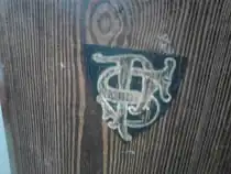 An interlaced "S" and "P" from an original front pew from the 1860s