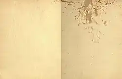 The primary method of stain formation is surface stains, where the staining substance is spilled out onto the surface or material and is trapped in the fibers, pores, indentations, or other capillary structures on the surface.[1] The material that is trapped coats the underlying material, and the stain reflects backlight according to its own color. Applied paint, spilled food, and wood stains are of this nature.[5]