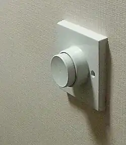 The first staircase timers were pneumatic pushbuttons. A large push-button, distinctly larger than a normal electrical switch, is pressed manually. An internal mechanism provides the delay. The internal piston is depressed by the button and holds the electrical contacts closed. This piston is spring-loaded to return upwards but is prevented from returning quickly by a pneumatic dashpot. This dashpot provides the timing function.[2][3]