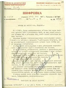 On July 2, 1937, the Politburo of the Central Committee of the Communist Party of Ukraine adopted Decision No. P51/94 "on anti-Soviet elements". The instructions, written by Stalin himself, prove that the events that took place were his own initiative:[30]