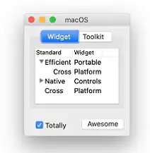 SWT widgets have the same look and feel as native widgets because they often are the same native widgets. This is in contrast to the Swing toolkit where all widgets are emulations of native widgets. In some cases the difference is distinguishable. For example, the macOS tree widget features a subtle animation when a tree is expanded and default buttons have an animated pulsing glow to focus the user's attention on them. The default Swing version of these widgets does not animate.