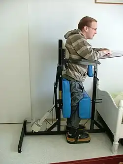 Standers are used by people with mild to severe disabilities such as spinal cord injury, traumatic brain injury, cerebral palsy, spina bifida, muscular dystrophy, multiple sclerosis, stroke, Rett syndrome, and post-polio syndrome.