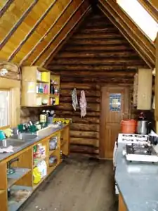 The kitchen is well supplied with dishes, cutlery, utensils, pots and pans and bake ware (including roasting pans, cookie sheets, coffee percolator, bread pans and muffin pans). There is a full-size propane oven, as well as some two-burner propane stoves for cooking. Propane is supplied by the Alpine Club via a large outdoor tank. Drinking water is available from a small stream fed by Kiwetinok lake (a day hike) running through the meadow 60 m south of the hut. It is advisable to boil or treat the water before drinking it.[5] In the winter visitors can dig down to the creek or melt snow for water.