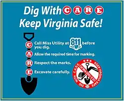 - ^ "Chapter 10.3 - Underground Utility Damage Prevention Act". leg1.state.va.us. Archived from the original on November 12, 2013.