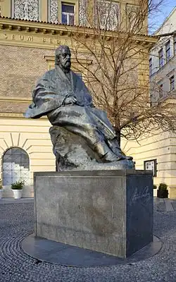 The statue of Bedřich Smetana (Czech: Socha Bedřicha Smetany) is a sculpture of the famous Czech composer Bedřich Smetana (1824–1884) located outside the Smetana Museum in Prague, Czech Republic. It was unveiled on 4 June 1984, in the centenary year of his death. The sculpture, 235 cm high and weighing about a ton, was by professor Josef Malejovský and architect Bedřich Hanák.[1]