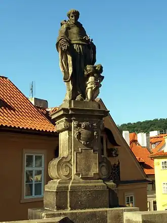 The statue of Nicholas of Tolentino (Czech: Socha svatého Mikuláše Tolentinského) is an outdoor sculpture by Jeroným Kohl, installed on the south side of the Charles Bridge in Prague, Czech Republic.[1]