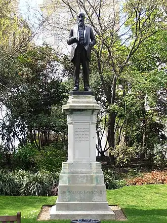 The statue of Sir Wilfrid Lawson (1829–1906) is an outdoor sculpture by David McGill, installed in Victoria Embankment Gardens in London, United Kingdom. The monument's allegorical sculptures depicting Charity, Fortitude, Peace, and Temperance were stolen in 1979.[1]