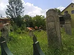 Nišans of that time do not have epitaphs in oriental languages, which will appear in large numbers later, but they have inscriptions in Bosnian Cyrillic (Bosančica), such as appear on stećci.[6] Seven inscriptions on the nišans written in Bosnian are known. The inscriptions on the nišans are of different shapes, one is plate-shaped, one is a stele with a gabled roof, one is an upright four-sided prism with a turban on top, and 4 are four-sided pillars with pyramidal ends and a so-called "half-apple".