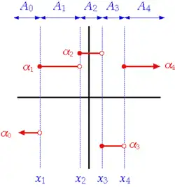 Sometimes, the intervals are required to be right-open[1] or allowed to be singleton.[2] The condition that the collection of intervals must be finite is often dropped, especially in school mathematics,[3][4][5] though it must still be locally finite, resulting in the definition of piecewise constant functions.