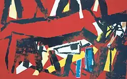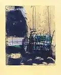Since 1981 Stepan Veranian has made etchings, aquatints and linocuts. Veranian fully embraced linocuts, during the period spent working in the Graphics Department, National Center of Aesthetics of Armenia. The National Gallery of Armenia[2][3] and MAMY have bought his prints. The thirteen Blue Prints of 1985 were made with linocut and painting. Veranian created a key series of 21 large scale linocuts in 1989, influenced by Federico García Lorca's poems. Other prints include the Composition and Dreams (1989) series, consisting of 13 linocuts. This series of linocuts was displayed for the first time in September 1990 at MAMY, as part of a group exhibition. The Migration (tales of the Aegean Sea, sheet 02 and 03, the Pushkin State Museum of Fine Arts, Moscow), a series of 21 etchings, was created between 1989 and 1991. In May 1995, he created a number of etchings, inspired by his public and private life, for an exhibition called Moscow-Yerevan, Question of the Ark at MAMY.